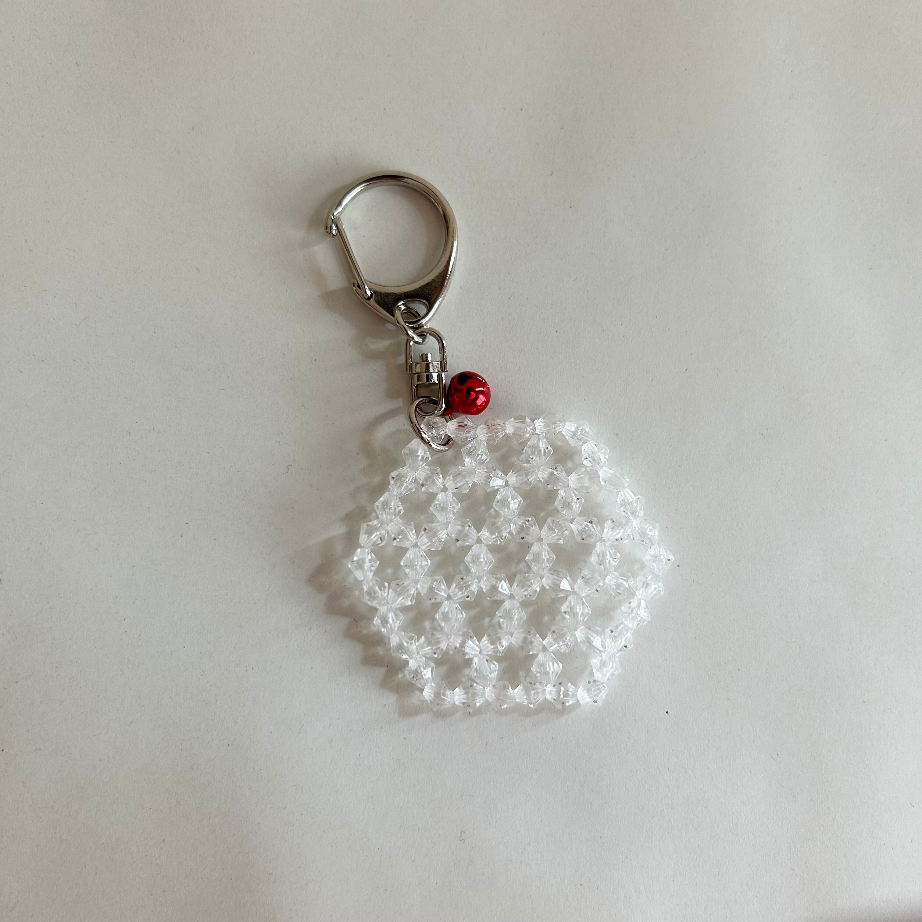 検索用:ビーズキーホルダー/六角形/アクリルビーズ/赤い鈴/ヘキサゴンチャーム/バッグチャーム/透明ビーズ/癒しグッズ/大人可愛い/イチゴイチエ
