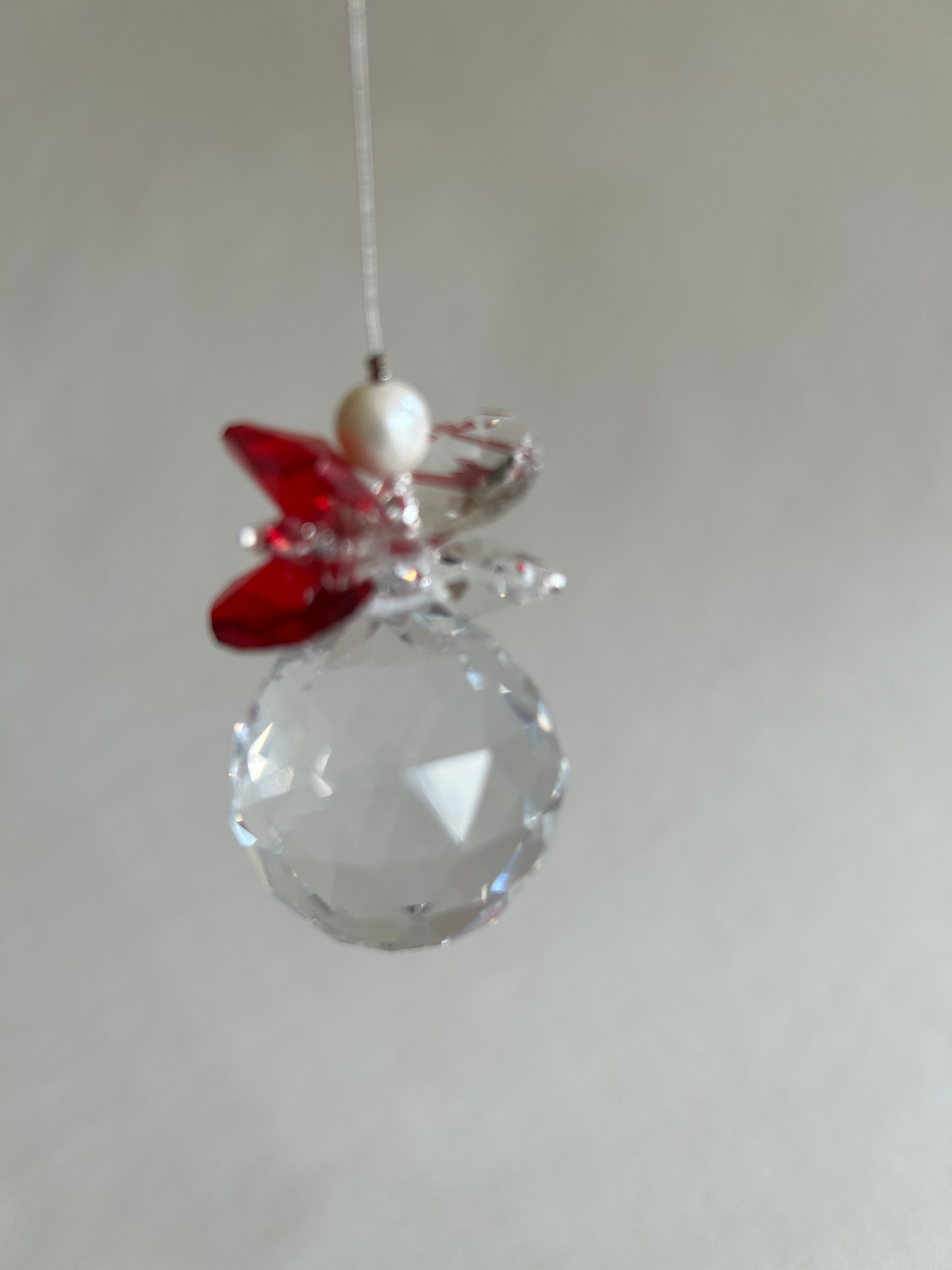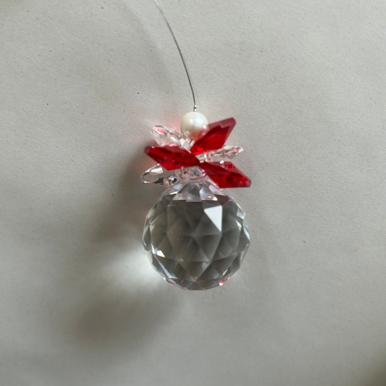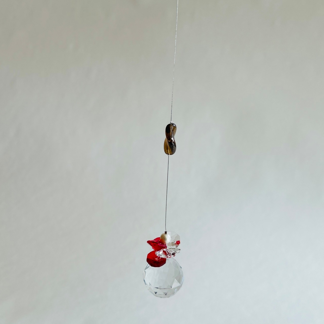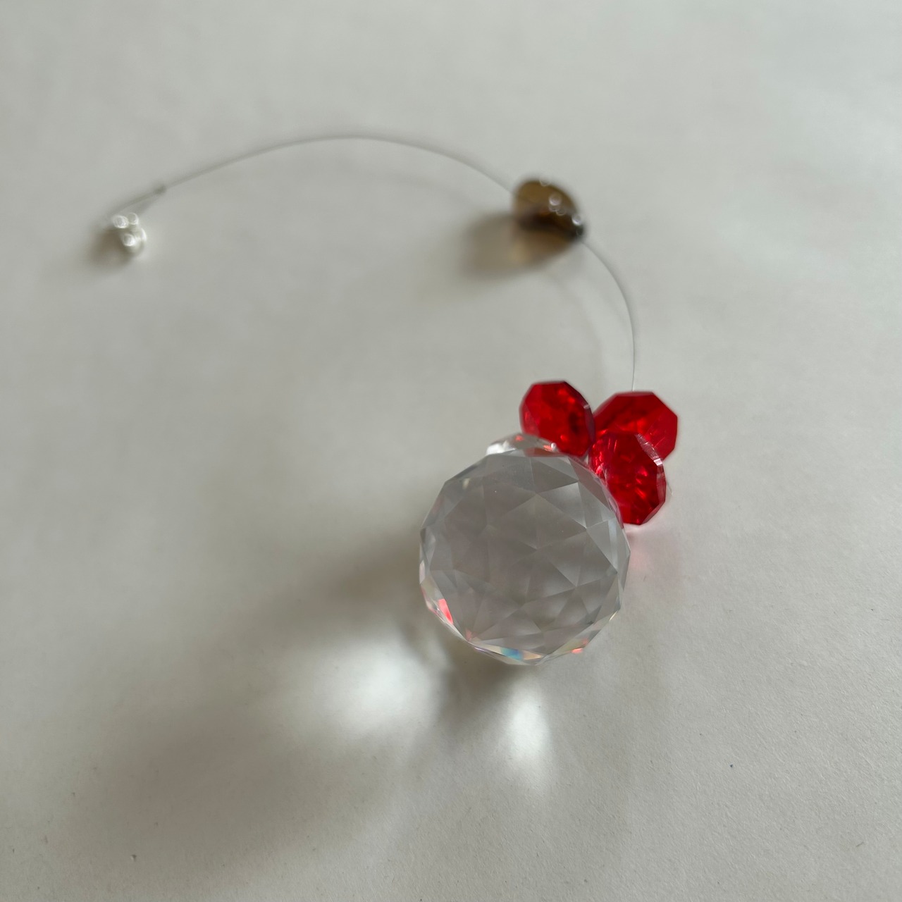 検索用:サンキャッチャー/クリスタルボール/30mm/赤いビーズ/オクタゴンビーズ/一粒パール/チェコガラス/カーテンレールに飾れる/吊り下げタイプ/イチゴイチエ