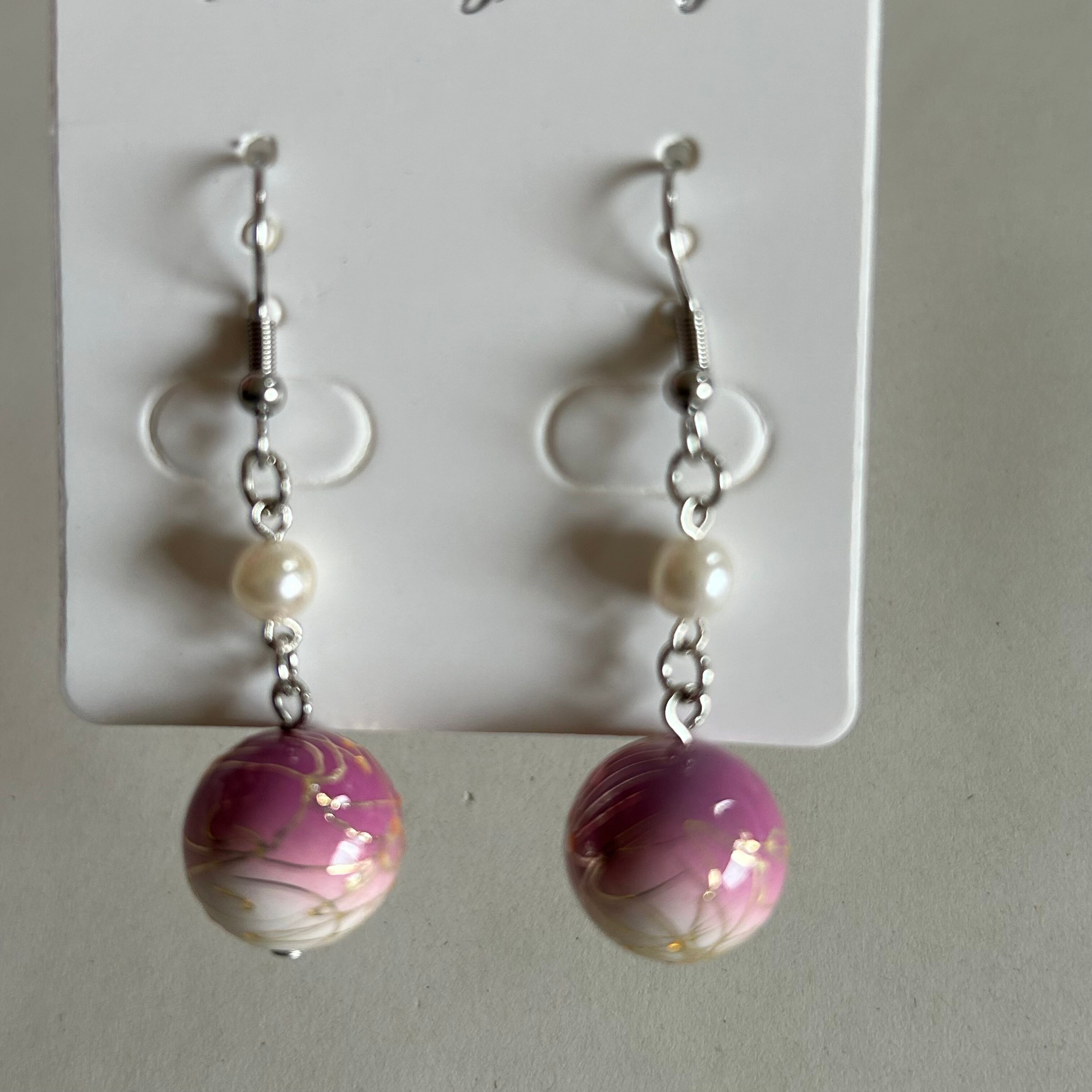 丸いビーズの下には、上品なつやのある一粒パールを添えて、
