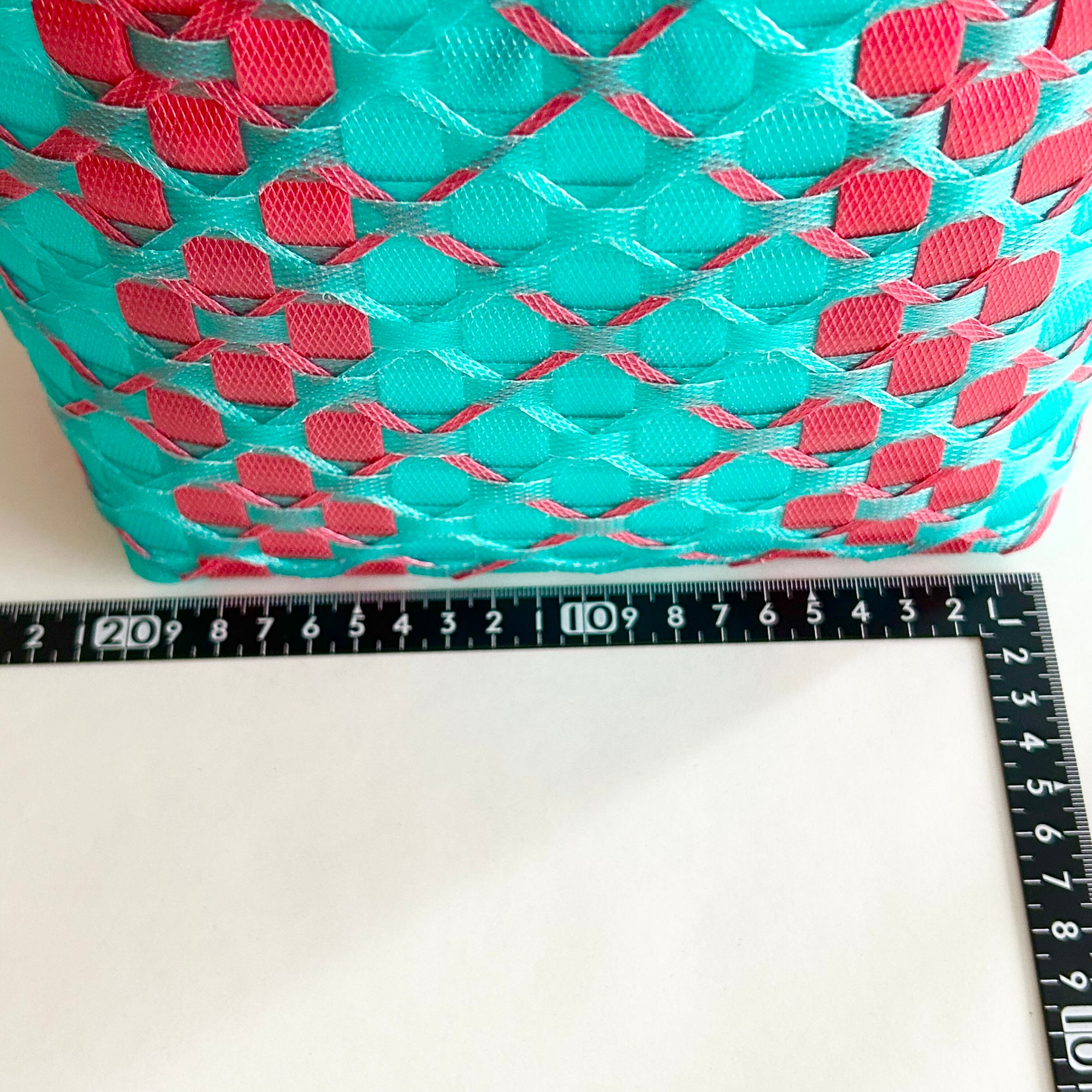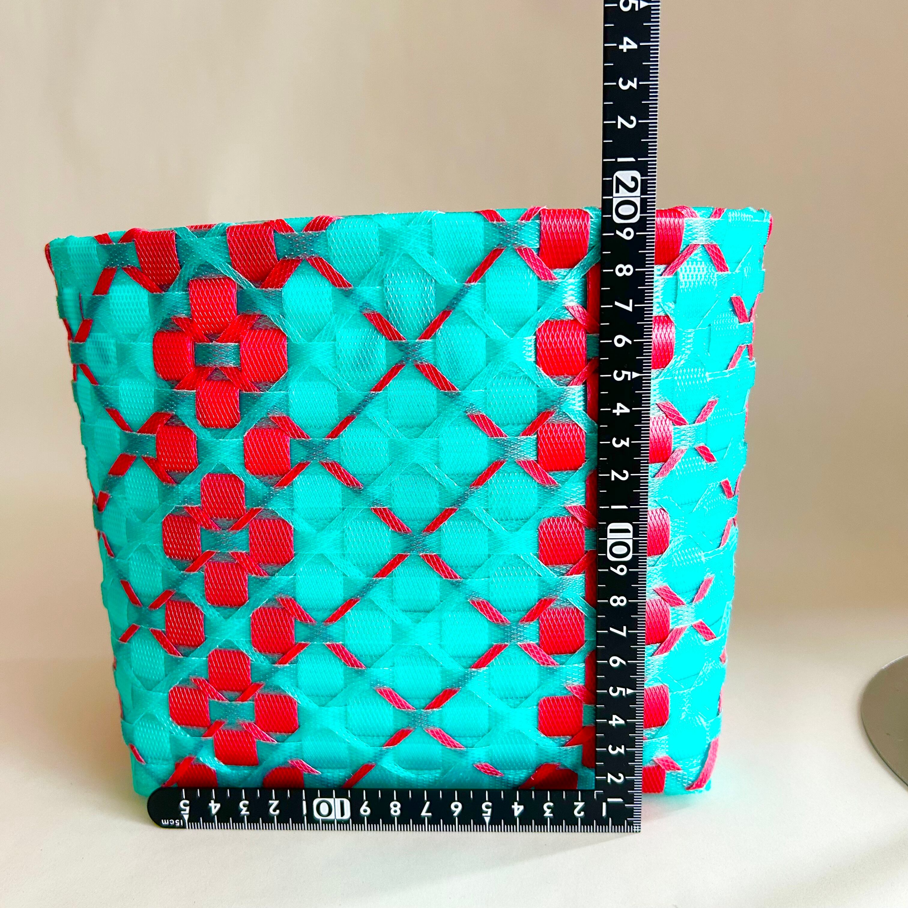 【プラカゴバッグ】紅梅模様×パール持ち手/PPバンド手編みトート(20×20×10cm)