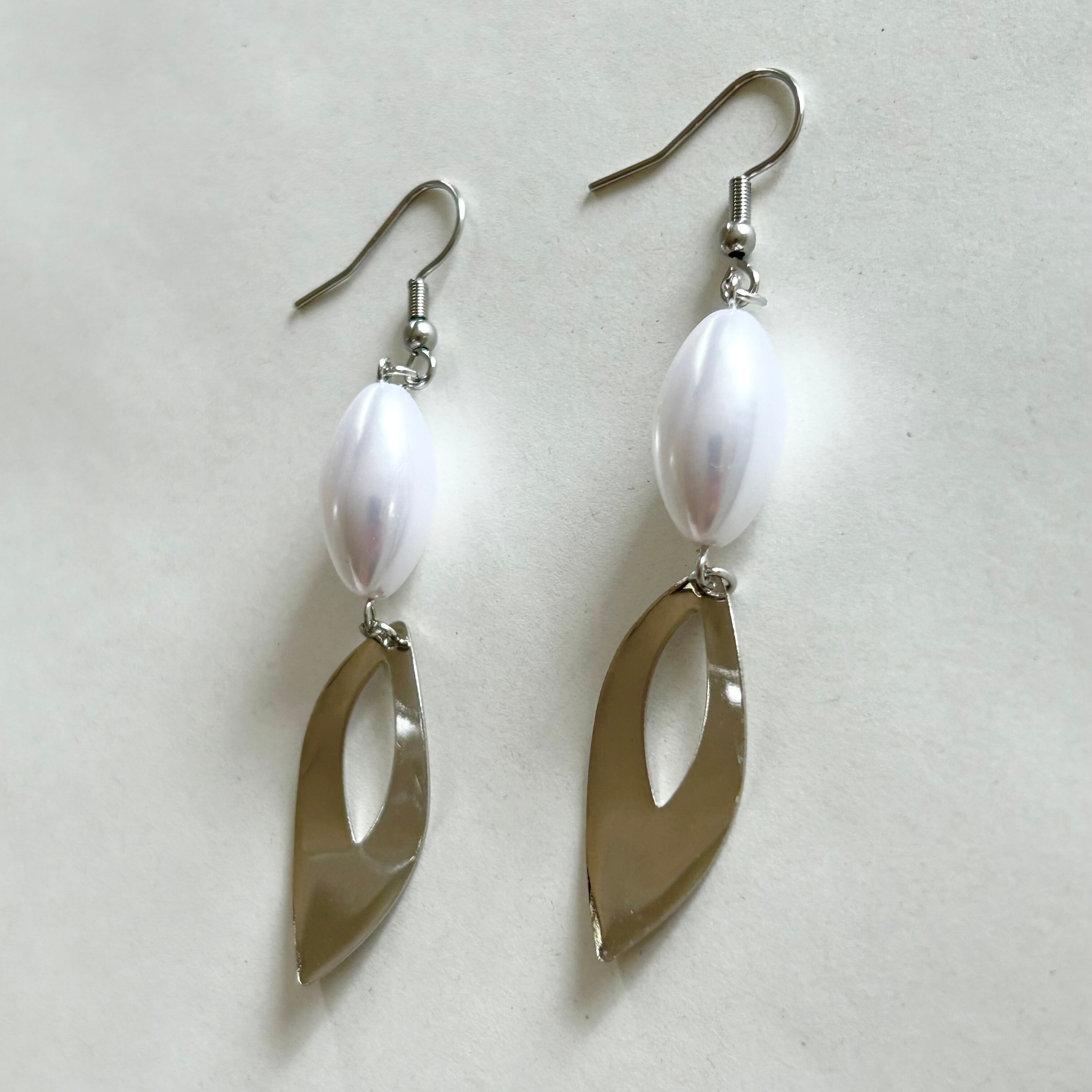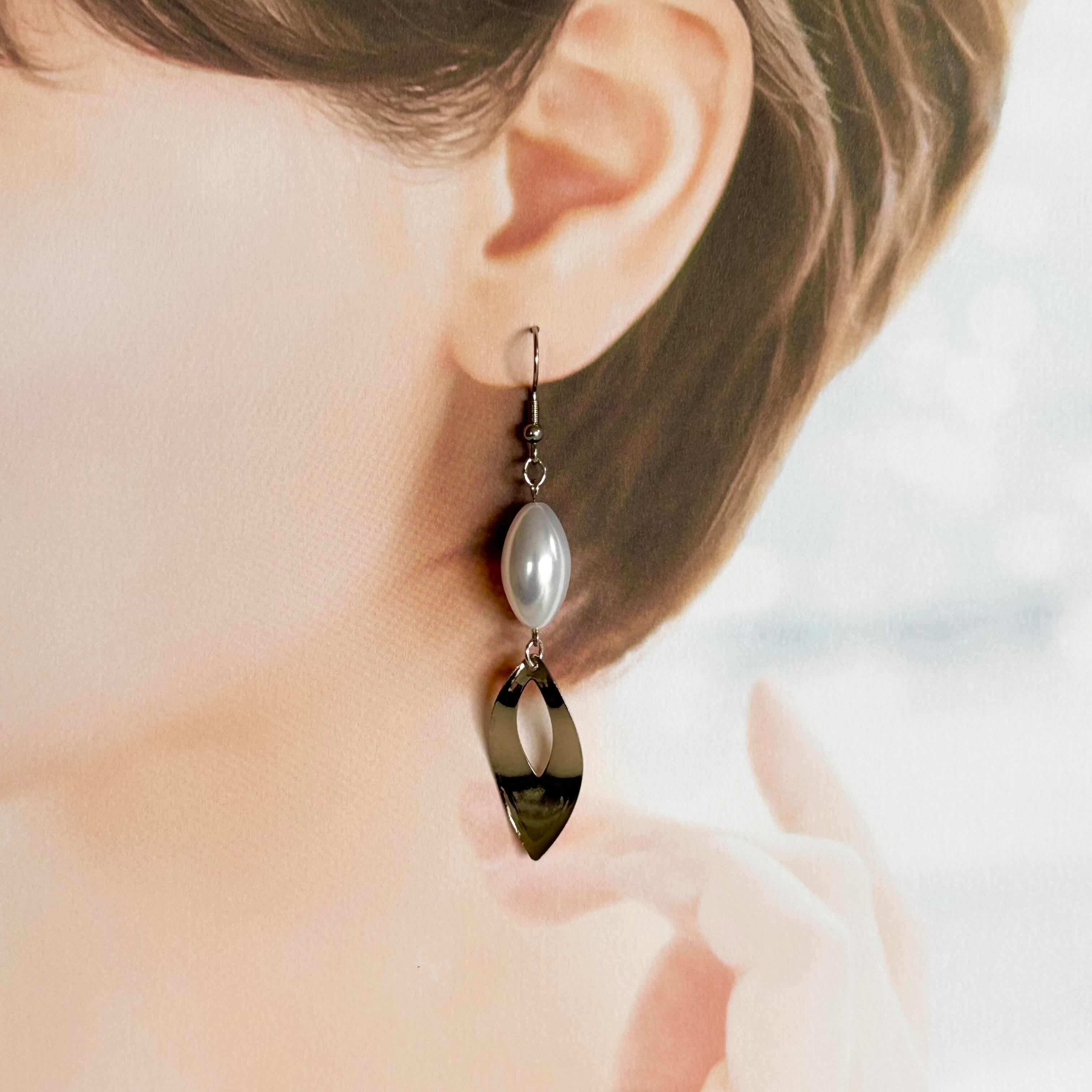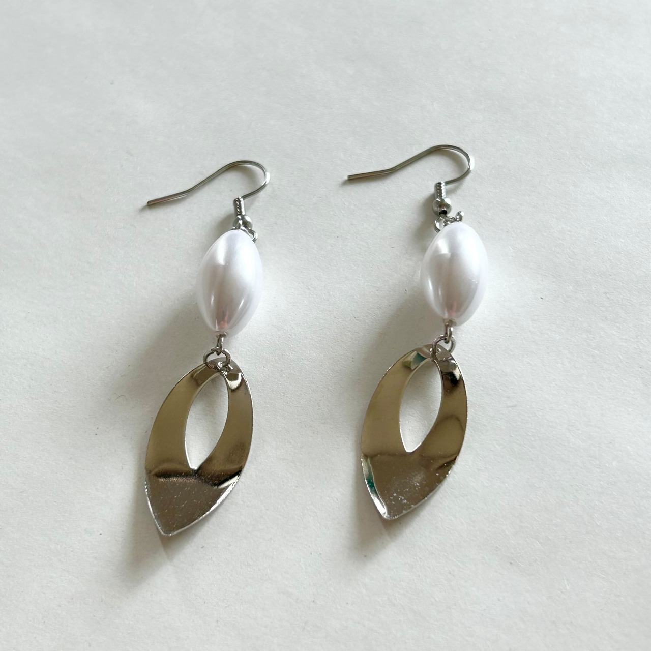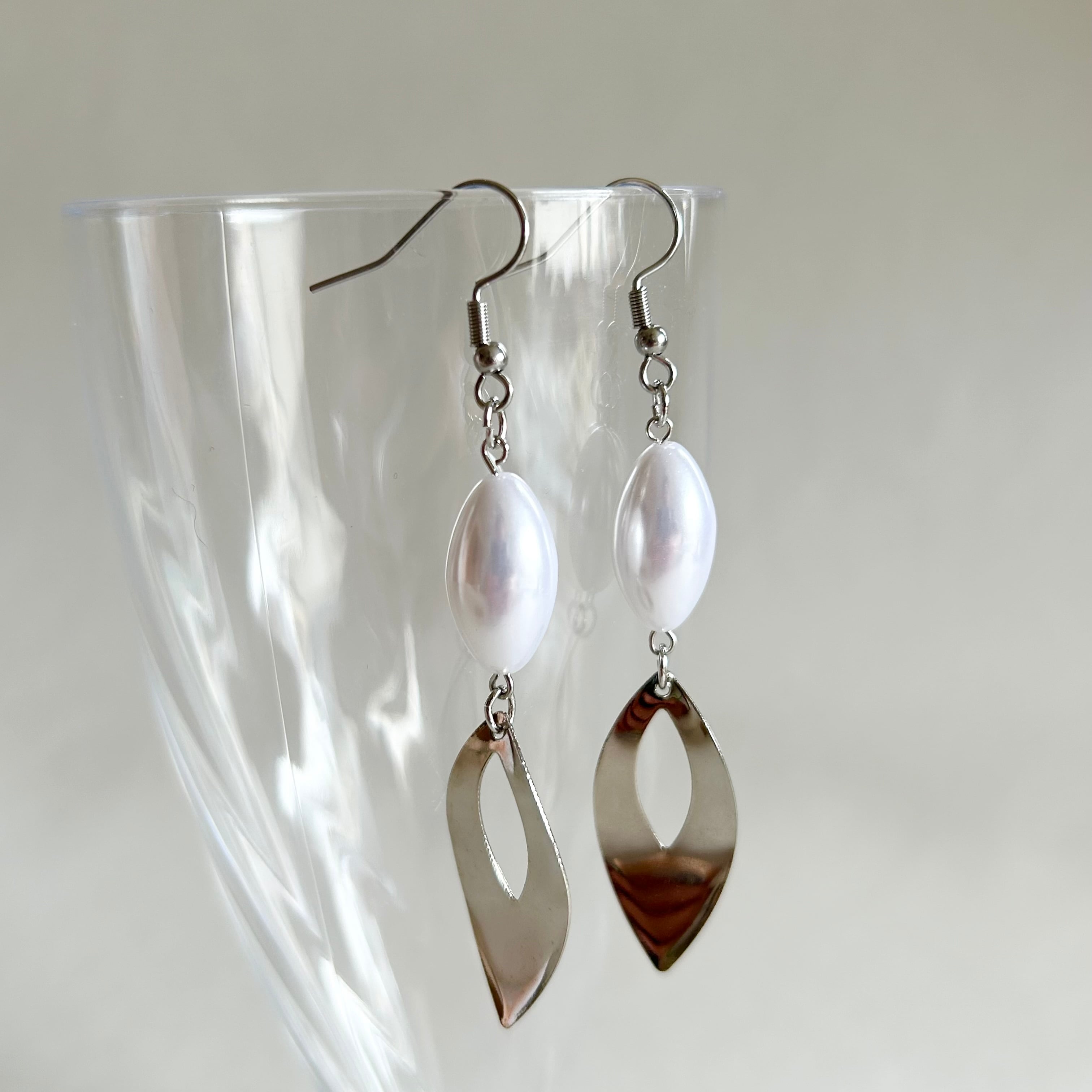 そんなイメージを込めてお作りした、上品なホワイトパール風×シルバーパーツの大人ピアスです。