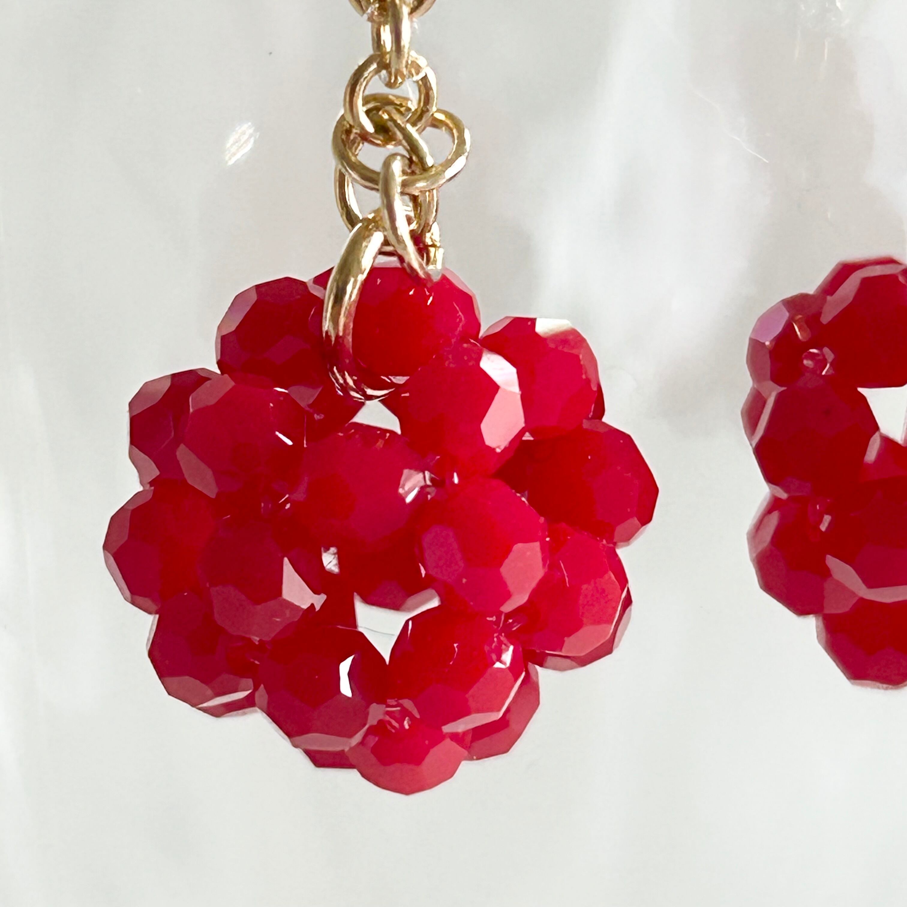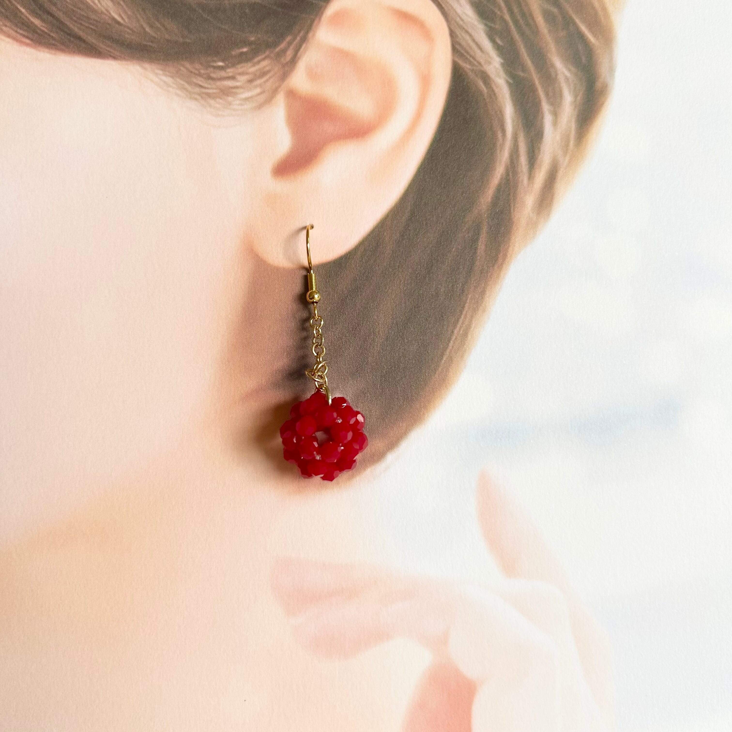 赤ピアス ビーズピアス サージカルステンレスピアス 金属アレルギー対応 揺れるピアス 軽いピアス ハンドメイドアクセサリー 小ぶりピアス 手編みビーズ アレルギーフリー ガーリーピアス ガラスビーズピアス ラウンドカットピアス デイリーアクセサリー プレゼント ギフト 大人可愛い レディースアクセサリー 赤いビーズ