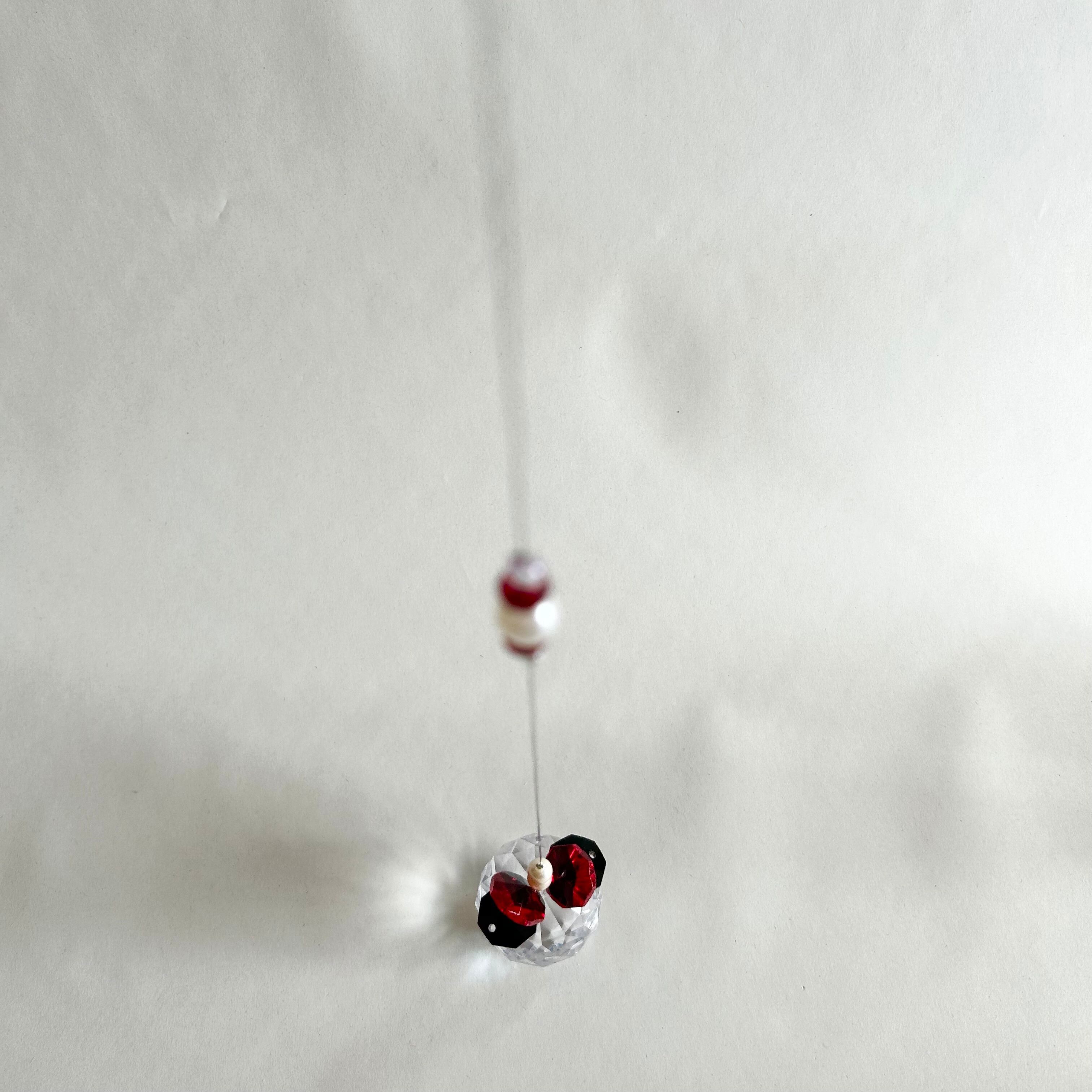 赤と黒のコントラストが印象的な、パンダをイメージした一点もののサンキャッチャーです。