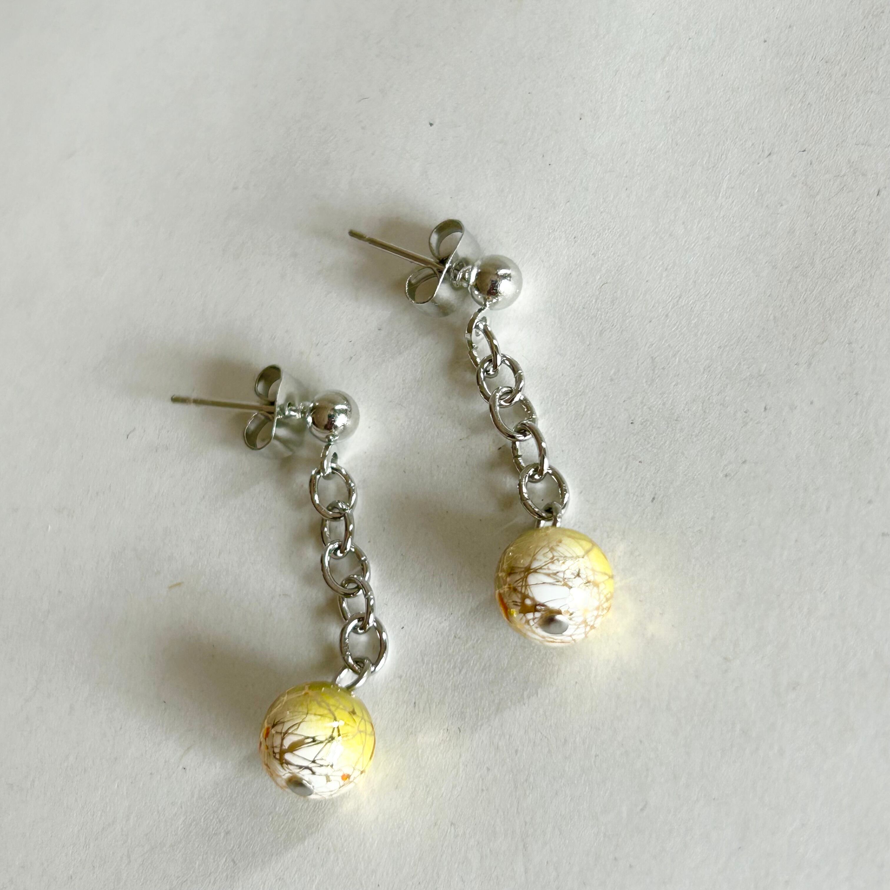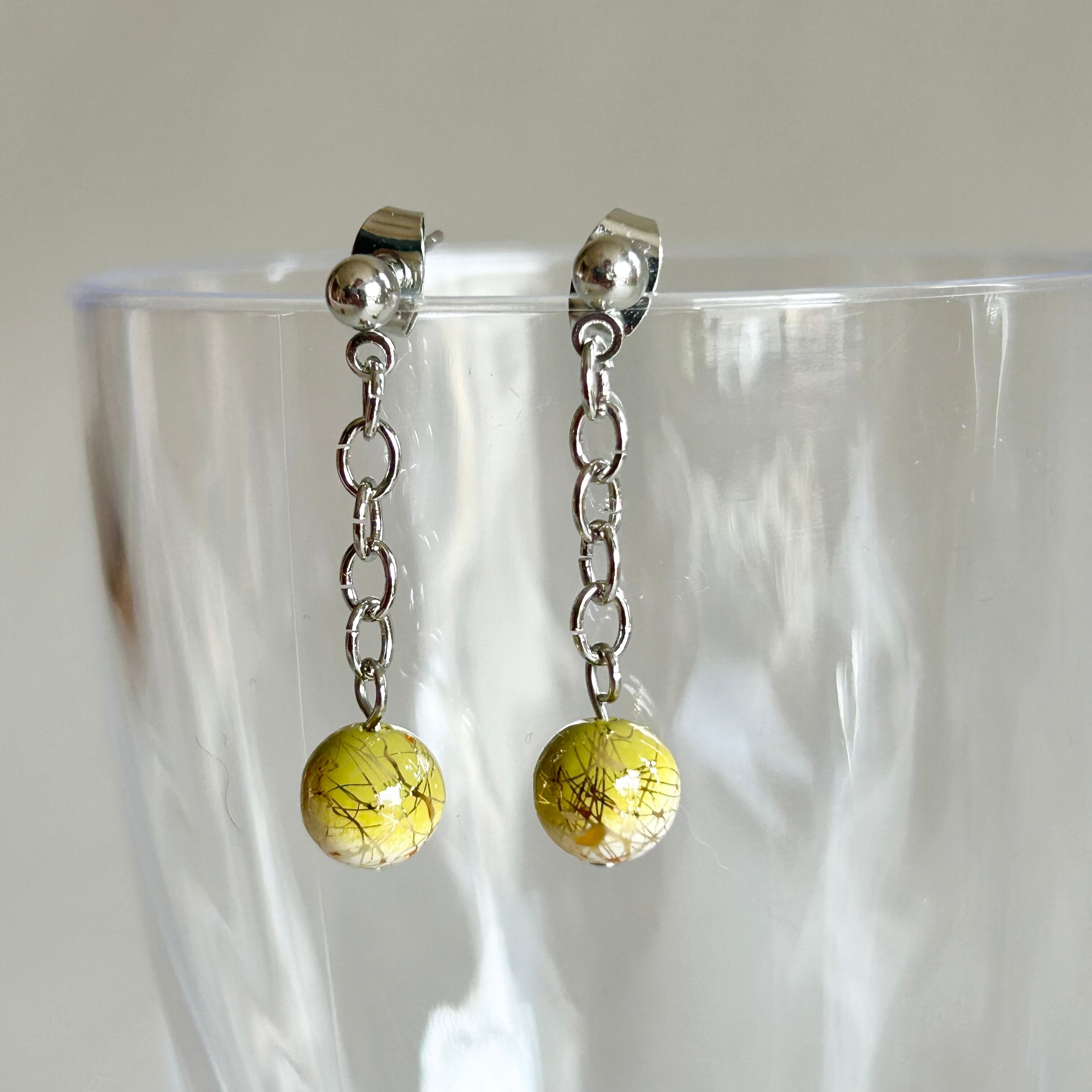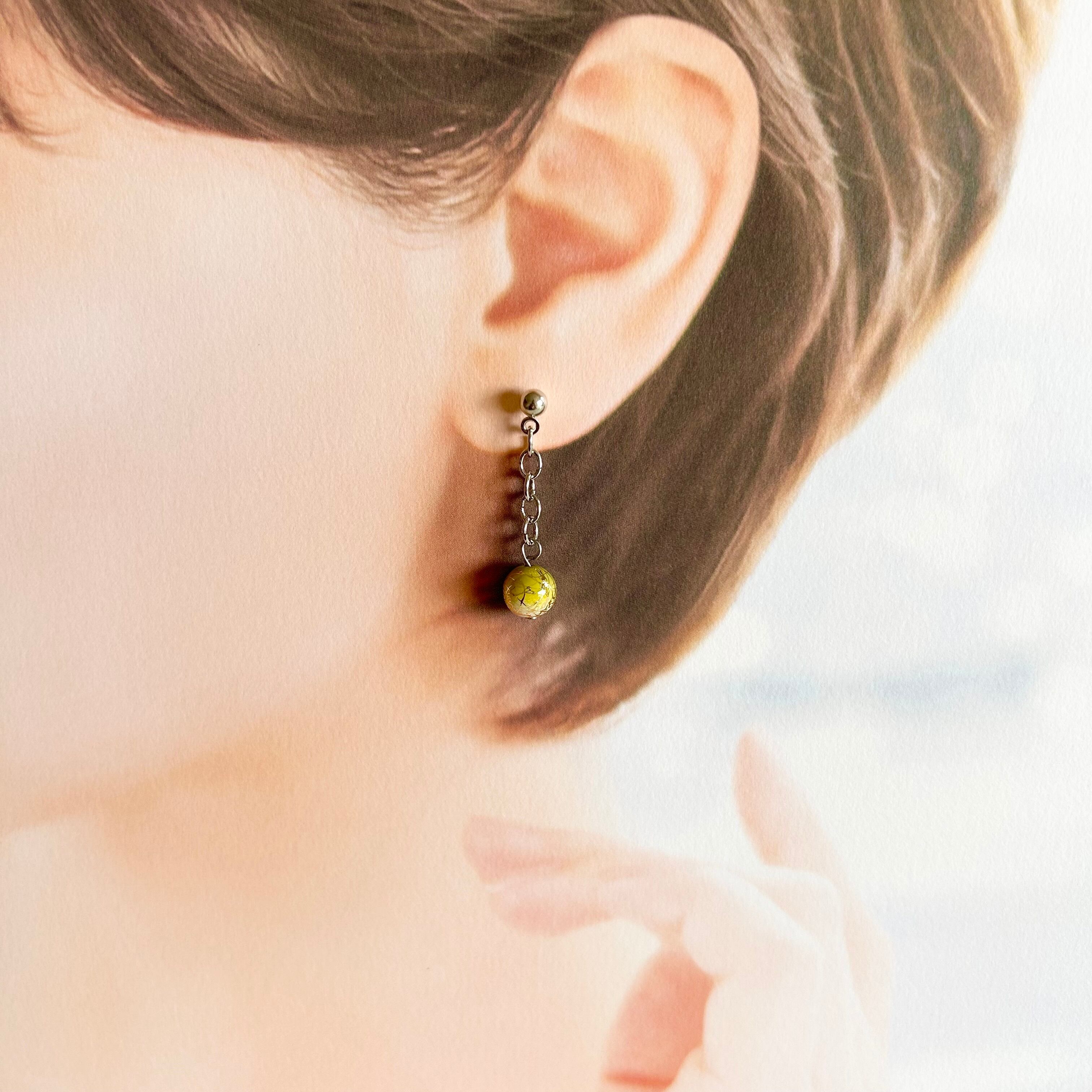 まるで陽だまりをそのまま閉じ込めたような、やさしいマーブル模様のイエローピアス。