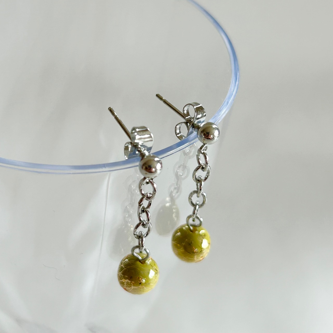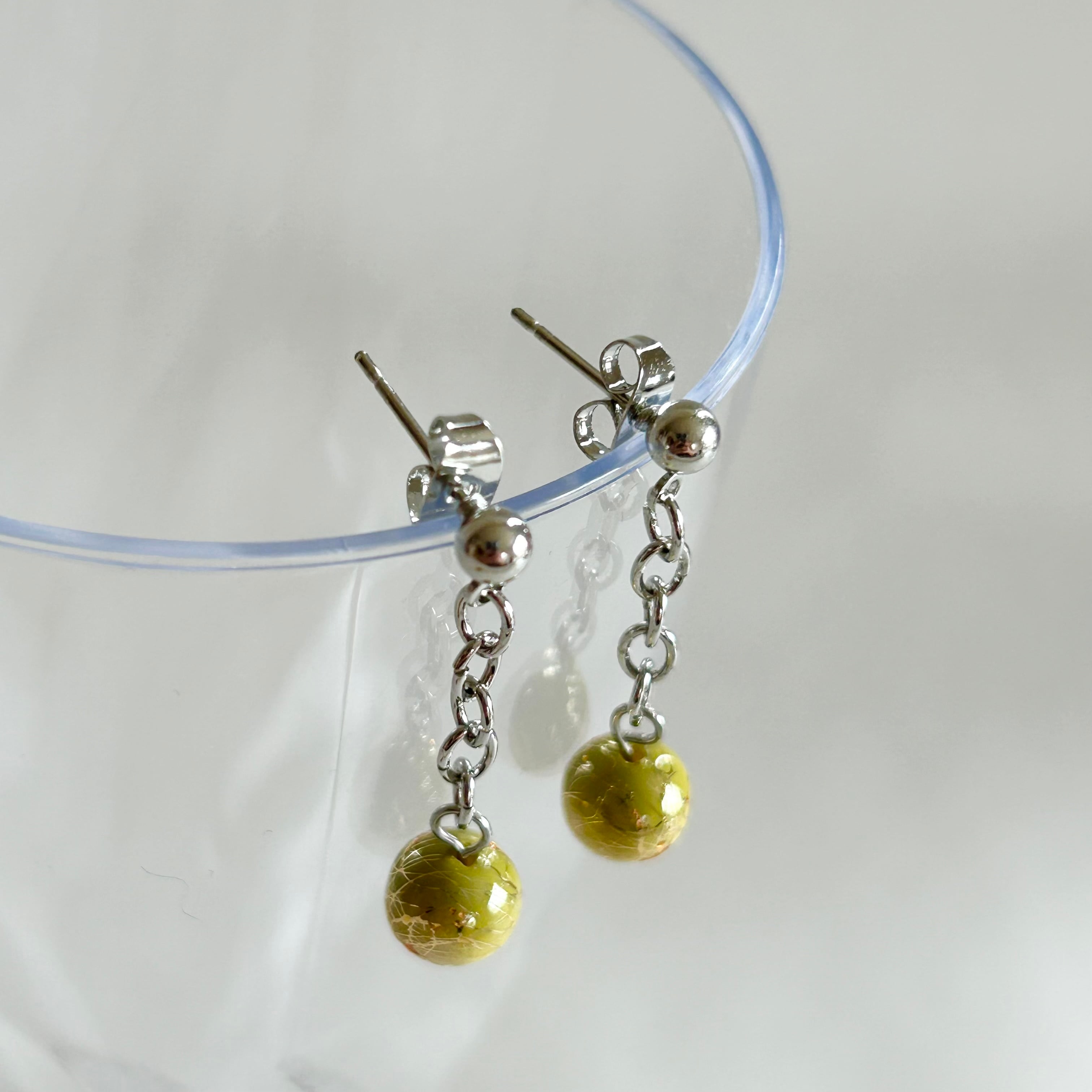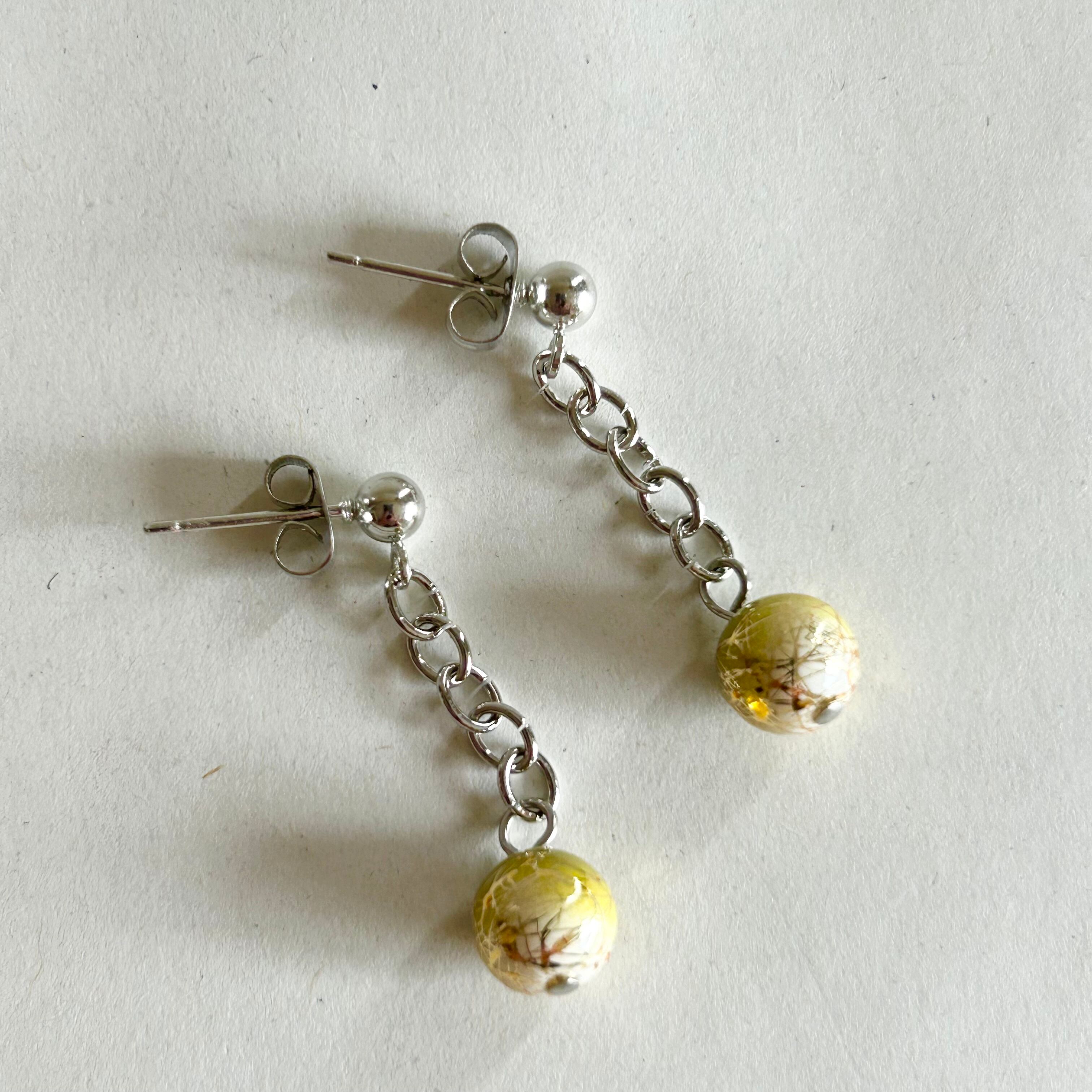 まるで陽だまりをそのまま閉じ込めたような、やさしいマーブル模様のイエローピアス。