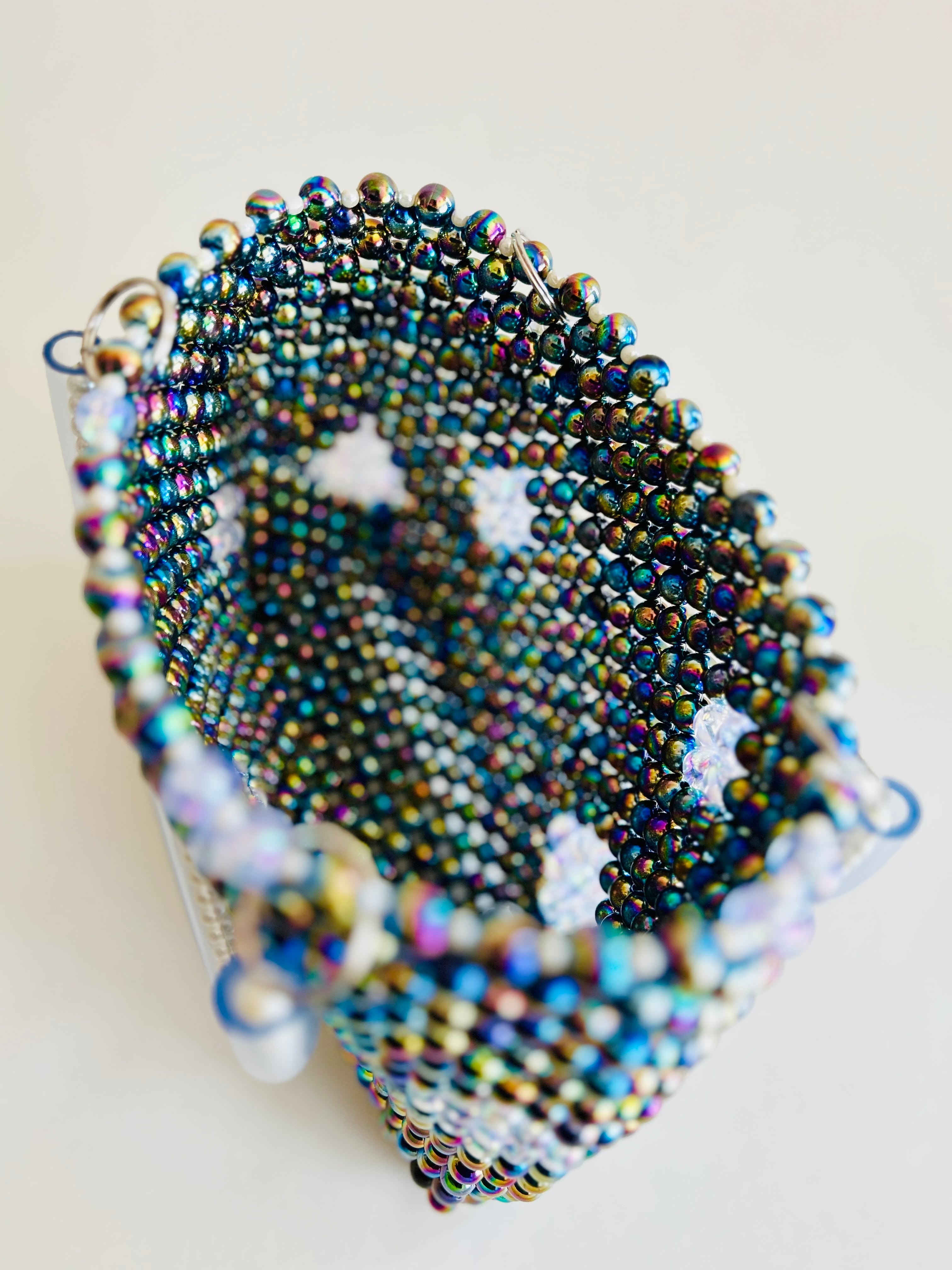 そんな幻想的な輝きを放つ、存在感たっぷりのビーズバッグが完成しました。
