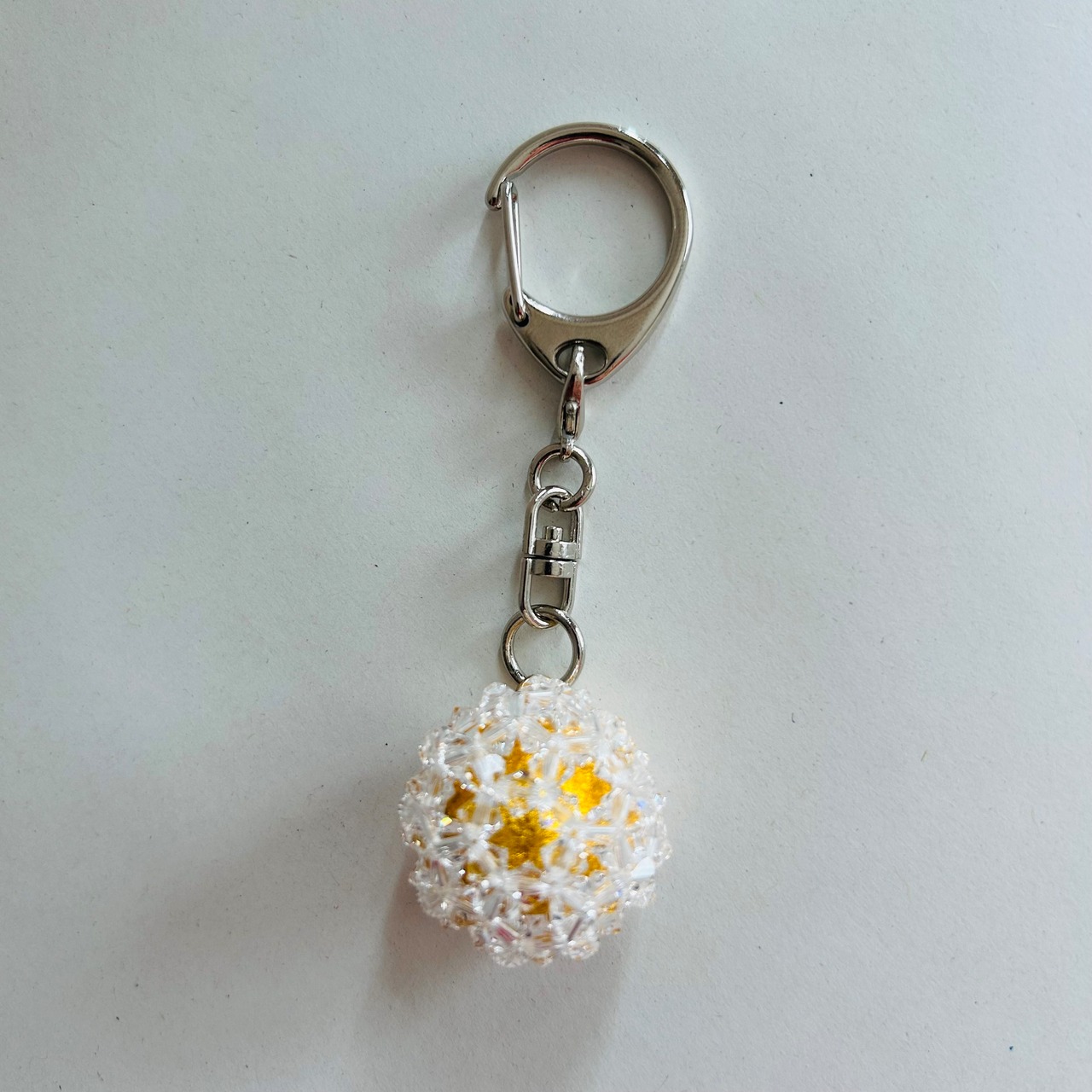 スワロフスキークリスタルのフラーレン構造に、開運効果で人気の水琴鈴を閉じ込めました。